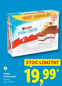 Lidl KINDER Felie de lapte OfertăKINDER Felie de lapte 10 x 28 gLidl21,49 RON25 august 202531 august 2025