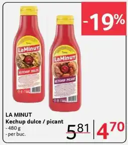 | 4 | LA MINUT Kechup dulce / picant 480 g | Selgros | 5,81 RON | 4,70 RON | -19% | 19 februarie 2026 | 05 martie 2026 | Vezi oferta | |