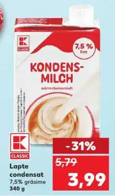 | Lapte condensat îndulcit 9% grăsime 397 g | Kaufland | 11,99 RON | 10,49 RON | 1,50 RON Discount | 21 decembrie 2022 | 27 decembrie 2022 |