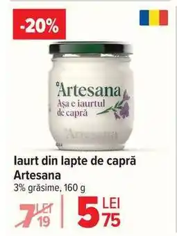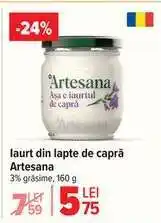 | Iaurt natur din lapte de capră cu bifidus Artesana | Carrefour | 5,59 RON | 18 martie 2026 | 24 martie 2026 | |||