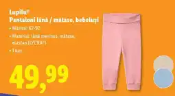 | 2 | Lupilu Pantaloni lână / mătase, bebeluși | Lidl | 49,99 RON | 19 ianuarie 2026 | 25 ianuarie 2026 | Vezi oferta | |||
