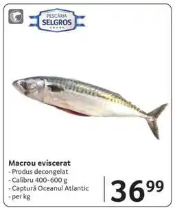 | Macrou eviscerat - Calibru 400 - 600 g - Captură Shetland Marea Britanie - per kg | Selgros | 21,99 RON | 16 iunie 2023 | 23 iunie 2023 | |||