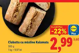| Ciabatta cu măsline Kalamata proaspăt coaptă 300 g | Kaufland | 3,85 RON | 2,99 RON | -22% | 15 octombrie 2025 | 21 octombrie 2025 |
