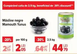| Măsline negre super colosal 100 g | Kaufland | 2,65 RON | 1,69 RON | -36% | 14 ianuarie 2026 | 20 ianuarie 2026 | |
