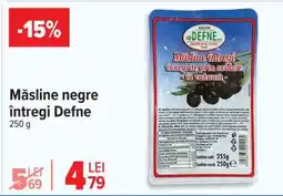 | Măsline negre întregi, Defne | Carrefour | 4,79 RON | 04 februarie 2026 | 17 februarie 2026 | |||