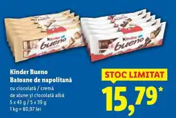 | 1 | Kinder Bueno Batoane de napolitană 5 x 43 g/ 5 x 39 g | Lidl | 15,79 RON | 27 decembrie 2025 | 31 decembrie 2025 | Vezi oferta | |||