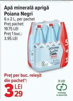 | Apă minerală carbogazoasă aprigă, Poiana Negri 6 x 2 L | Carrefour | 3,17 RON | 17 decembrie 2025 | 26 decembrie 2025 |