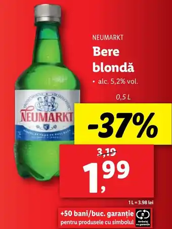 | NEUMARKT Bere blondǎ | Lidl | 3,79 RON | 20 mai 2024 | 26 mai 2024 | |||