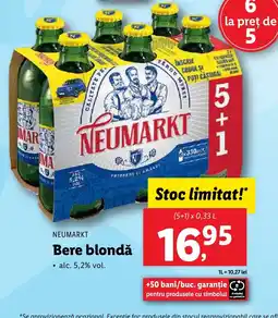 | Neumarkt Bere blondă (5+1) x 0.5 l | Lidl | 15,85 RON | 6 la preţ de 5 | 03 noiembrie 2025 | 09 noiembrie 2025 | ||