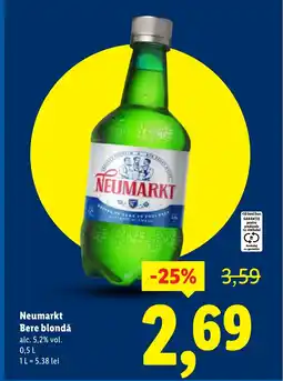 | Neumarkt Bere de blondă 0.5 L | Lidl | 3,49 RON | 2,29 RON | -34% | 04 august 2025 | 10 august 2025 | |