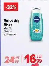| Gel de duş pentru femei, Nivea 250 ml | Carrefour | 16,85 RON | 11,39 RON | -32% | 03 septembrie 2025 | 16 septembrie 2025 | |