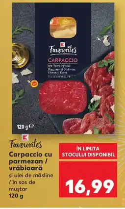 | Carpaccio cu parmezan / vrăbioară 120 g | Kaufland | 16,99 RON | 24 decembrie 2025 | 30 decembrie 2025 | |||