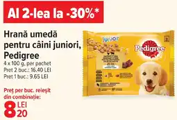 | 2 | Hrană umedă pentru câini juniori, Pedigree 4 x 100 g | Carrefour Market | 8,20 RON | 04 februarie 2026 | 17 februarie 2026 | Vezi oferta | |||