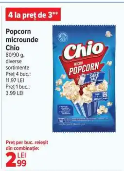 | 3 | Popcorn microunde Chio | Carrefour | 2,99 RON | 29 aprilie 2026 | 05 mai 2026 | Vezi oferta | |||