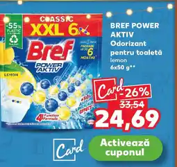 | 2 | BREF Power Aktiv Odorizant pentru toaletă 6 x 50 g | Kaufland | 33,54 RON | 24,69 RON | -26% | 17 decembrie 2025 | 23 decembrie 2025 | Vezi oferta | |