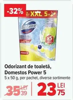 | Odorizant vas toaletă, Domestos Power 5 3 x 50 g | Carrefour | 19,19 RON | 14,99 RON | -21% | 03 septembrie 2025 | 16 septembrie 2025 | |