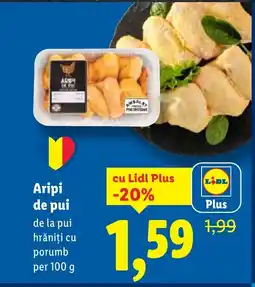 | 2 | Aripi de pui 100 g | Lidl | 1,99 RON | 1,59 RON | cu Lidl Plus -20% | 26 ianuarie 2026 | 01 februarie 2026 | Vezi oferta | |