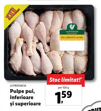| LA PROVINCIA Pulpe întregi de pui 100 g | Lidl | 1,25 RON | 09 decembrie 2024 | 15 decembrie 2024 | |||