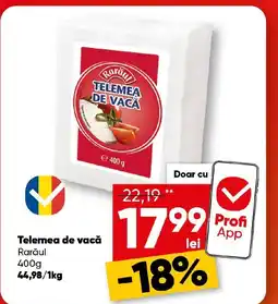 | Rarǎul Telemea de vacă 400 g | PROFI | 22,19 RON | 17,99 RON | -18% | 21 ianuarie 2026 | 03 februarie 2026 | |