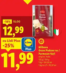 | Lovilio grana padano / parmigiano reggiano ras / fâșii 125 / 150g | Lidl | 13,99 RON | 10,49 RON | 3,50 RON Discount | 23 ianuarie 2023 | 29 ianuarie 2023 |