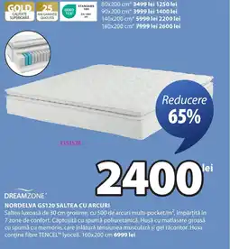 | DREAMZONE® REVA GS60 saltea cu arcuri | JYSK | 3.999,00 RON | 2.000,00 RON | Reducere 49% | 05 iulie 2025 | 27 iulie 2025 | |