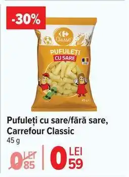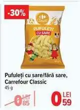 | Pufuleţi cu sare Buggy 75 g | Carrefour | 1,69 RON | 06 august 2025 | 12 august 2025 | |||
