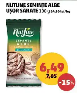 | Nutline seminte albe uşor sărate 100 g | Penny | 7,49 RON | 5,19 RON | -30% | 16 iulie 2025 | 22 iulie 2025 | |