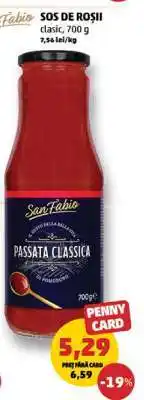 | SOS DE ROȘII CLASIC 700 g | Penny | 5,99 RON | 5,29 RON | 0,70 RON Discount | 03 iulie 2024 | 09 iulie 2024 | |