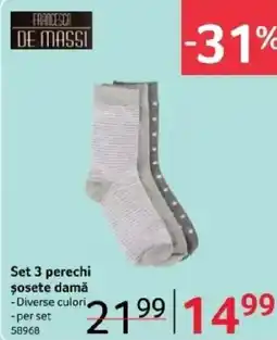| Set 3 perechi şosete bărbați | Selgros | 21,99 RON | 14,99 RON | -31% | 22 ianuarie 2026 | 05 februarie 2026 | |