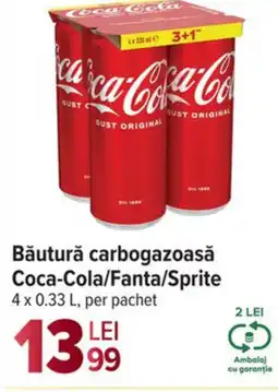 | Băutură carbogazoasă Fanta/Sprite/ Coca-Cola 4 x 0.33 L. | Carrefour Market | 12,69 RON | 29 octombrie 2025 | 04 noiembrie 2025 | |||