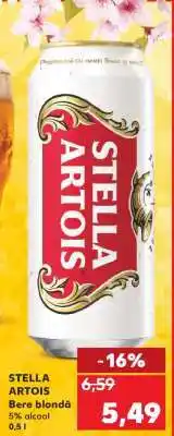 | STELLA ARTOIS Bere blondă 5% alcool 0.66 L. | Kaufland | 9,99 RON | 6,49 RON | -35% | 14 ianuarie 2026 | 20 ianuarie 2026 | |