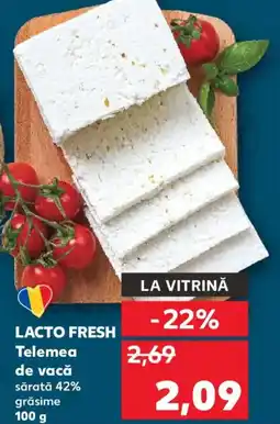 | LACTO FRESH Telemea de vacă | Kaufland | 27,39 RON | 19,99 RON | -27% | 15 octombrie 2025 | 21 octombrie 2025 | |