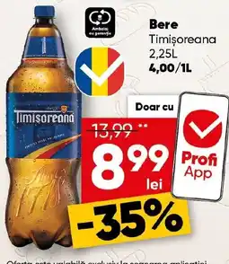 | Bere blondă fără alcool Timişoreana 4 x 0.5 L | Carrefour Market | 16,27 RON | 12,50 RON | -23% | 21 ianuarie 2026 | 27 ianuarie 2026 |