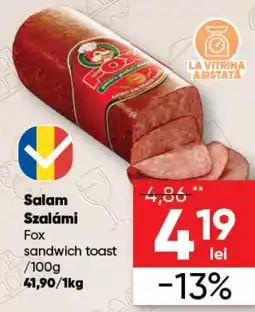| FOX Salam sandwich toast 730 g | Kaufland | 29,99 RON | 24,99 RON | Card -16% | 12 noiembrie 2025 | 18 noiembrie 2025 | |