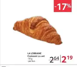 | 2 | LA LORRAINE Croissant cu unt 55 g | Selgros | 2,64 RON | 2,19 RON | -17% | 02 ianuarie 2026 | 22 ianuarie 2026 | Vezi oferta | |