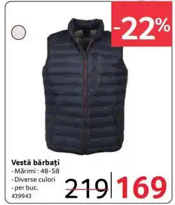 | Vestă bărbați | Selgros | 199,00 RON | 159,00 RON | 40,00 RON Discount | 08 decembrie 2023 | 31 decembrie 2023 | |