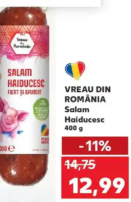 | VREAU DIN ROMÂNIA Salam uscat 400 g | Kaufland | 27,49 RON | 22,99 RON | -16% | 31 decembrie 2025 | 06 ianuarie 2026 | |