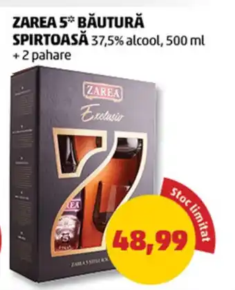 | ZAREA 5* BĂUTURĂ SPIRTOASĂ 500 ml | Penny | 48,99 RON | 24 aprilie 2024 | 30 aprilie 2024 | |||