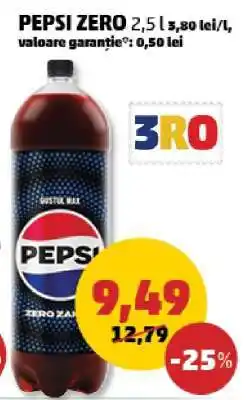 | PEPSI Zero 2.5 L. | Penny | 9,99 RON | 8,49 RON | -15% | 05 februarie 2025 | 11 februarie 2025 | |